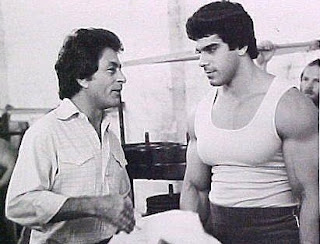 The Hulk was played by 26-year old bodybuilder Lou Ferrigno (left and top), a multiple Mr. Universe and Mr. America contender whom I met when I was working for Muscle and Fitness; he appeared on the cover at least once a year.