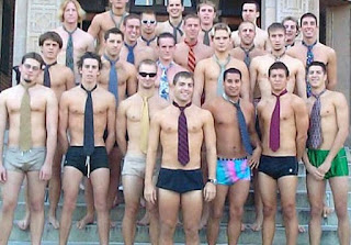 "I'm his coach. We're in town for a game with the local university." He mentions a college in Minnesota, about 200 miles away. That explains the twink parade.