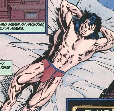 Why the lack of beefcake? I suspect it has something to do with the writers, who were typically girl-chasing heteros who had no interest in drawing the male form. Or else they thought that the audience consisted entirely of 15 year old hetero boys who had no interest in seeing the male form.