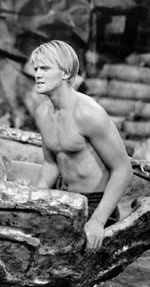 A Journey to the Center of the Earth, Professor Lindenbrock, his nephew Axel, and their Icelandic guide Hans journey alone, although Axel does have a girlfriend waiting back home. In the 1959 Disney version (actually from 20th Century Fox), the Professor meets a lady, and the girlfriend gets a more substantial role. But at least there are substantial shirtless shots of teen idol