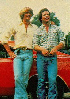 The Dukes of Hazzard (1979-1985) wasn't really a hillbilly show, though the "backwood Adonis" theme can be traced back through Jethro Bodine to L'il Abner. It was set in the country (Hazzard, Georgia), not the hills, and the premise was derived on the 1970s trucker fad. The Duke cousins, the blond Bo (John Schneider) and the brunette Luke (Tom Wopat), drove a 1969 Dodge Charger instead of a truck, but they still zoomed through rustic locales with a country-fried sheriff, Boss Hogg (Sorrell Booke), in hot pursuit.