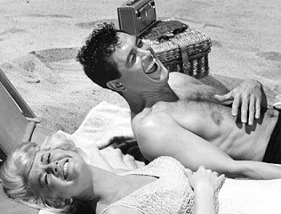 Doris Day got her start in the light musical comedies of the 1940s, but she made her mark as a liberated woman in a series of Camelot-era sex comedies with suggestive titles: Pillow Talk (1959), It Happened to Jane (1959), Lover Come Back (1961), That Touch of Mink (1962), The Thrill of it All (1963), Move Over Darling (1963). Her usual costar, gay actor Rock Hudson, helped her tiptoe around the boundary between not knowing that gay people exist and knowing but not saying.